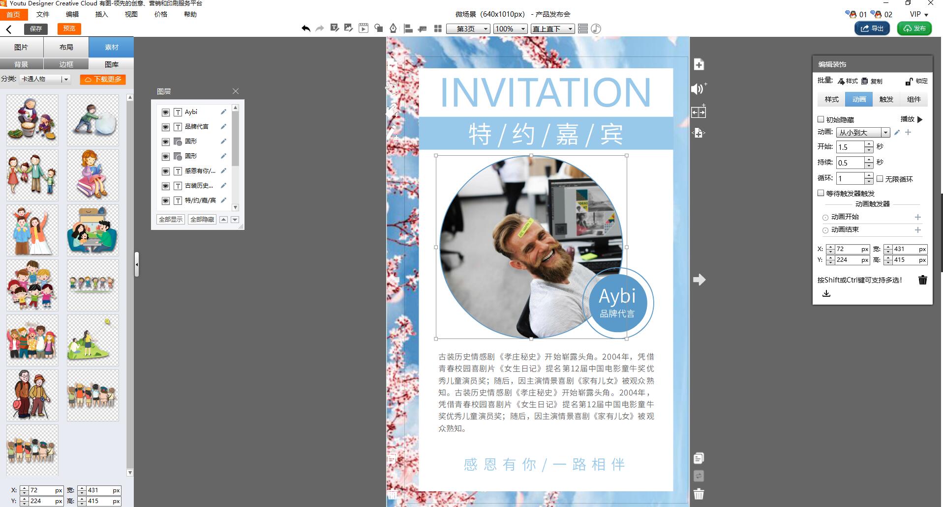 服务数十万企业客户,拥有海量素材库与行业模板库,针对各种不同行业客户,提供符合需求的设计素材。